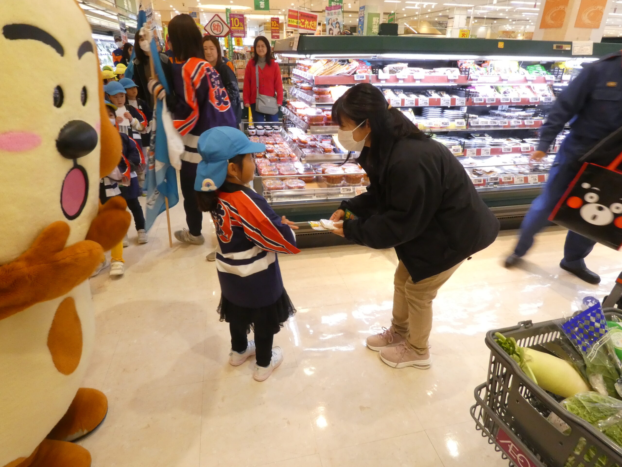 ~2025 防火パレード~ 12月9日(火)、イオン八代ショッピングセンターにて防火パレードを開催しました! パール保育園・いずみ保育園・白島ぎんが保育園の園児たち、八代市公認ゆるキャラ「ちくワン」、消防団員・消防職員が店内を歩きながら元気いっぱいに『火の用心』を呼びかけました。 これから空気が乾燥し、火災が発生しやすい季節です。 皆さま、一人ひとりの心がけで火災を防ぎましょう。 12月13日(土)は、竜北「道の駅」で防火パレードを実施します。 ぜひお立ち寄りください! 2025年12月10日イベント情報