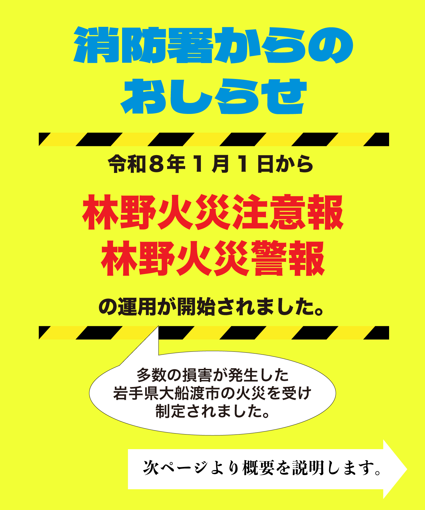 現在、気温の低下と空気の乾燥により、林野火災が発生しやすい状況が続いています。